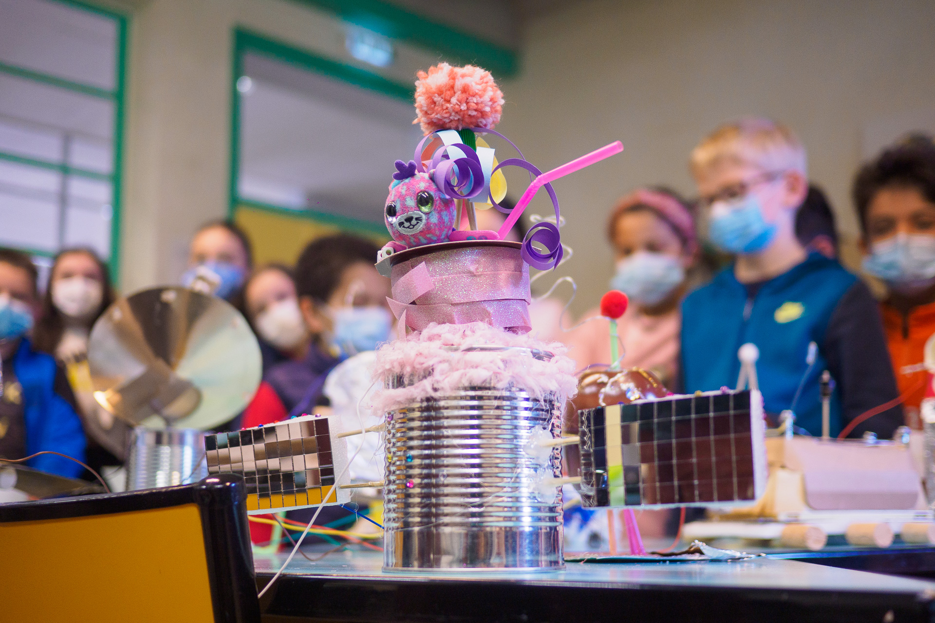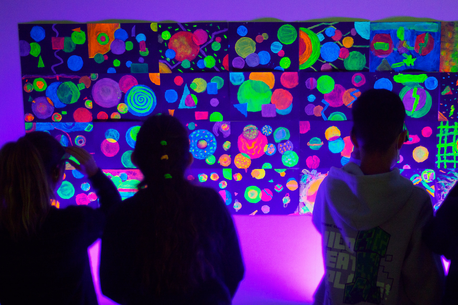 Au sein du parcours, sont mêlées une série d’oeuvres réalisées par et avec les enfants, explorant divers médiums telle que la peinture, la photographie, le VJing, l'installation en mapping vidéo, les expériences visuelles et objets sonores. L'exposition prend place volontairement au sein de l'école, transformant l'institution normative en espace de célébration artistique tout azimut.